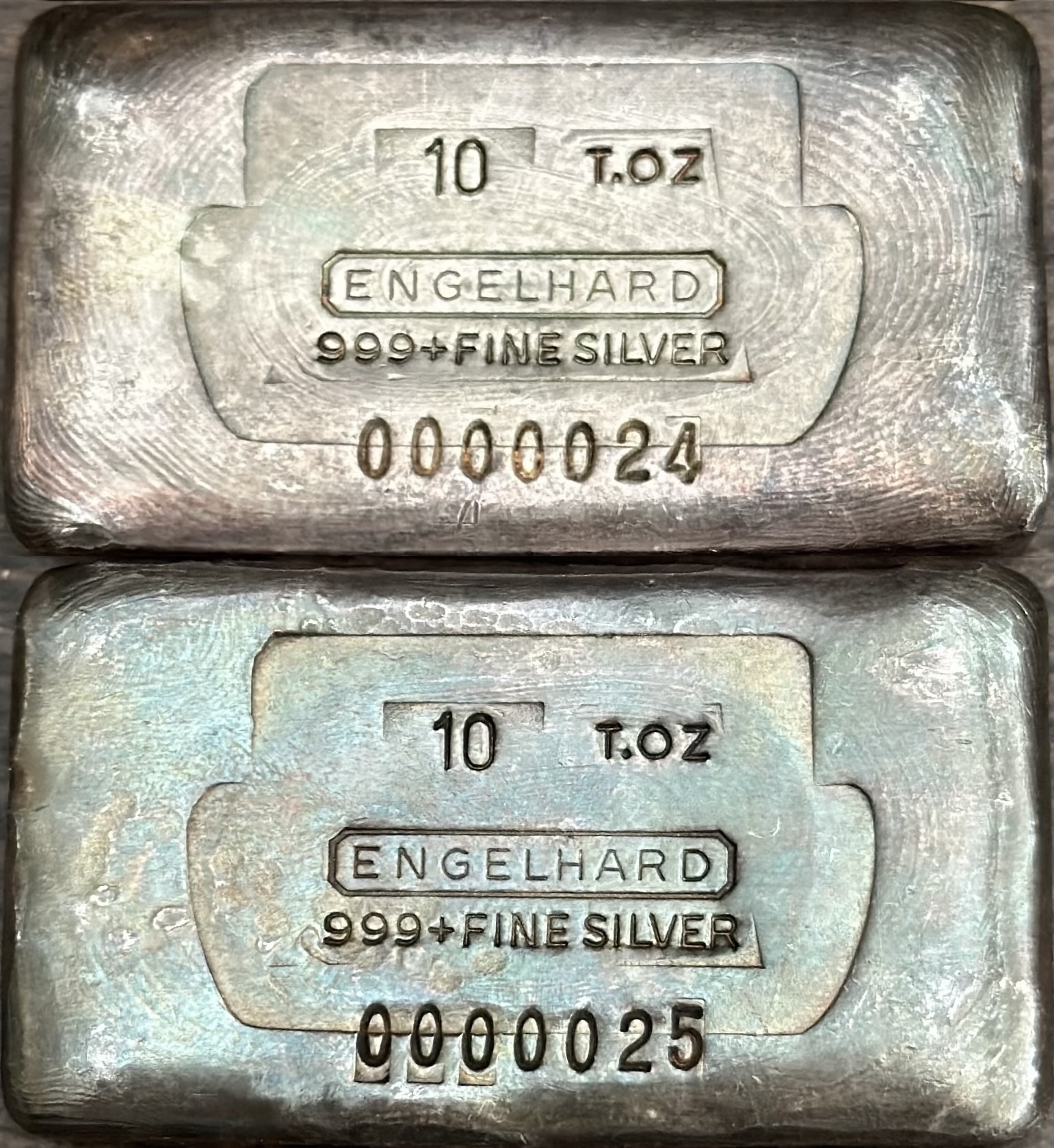- Most Engelhard 10oz class silver bars have serial numbers.