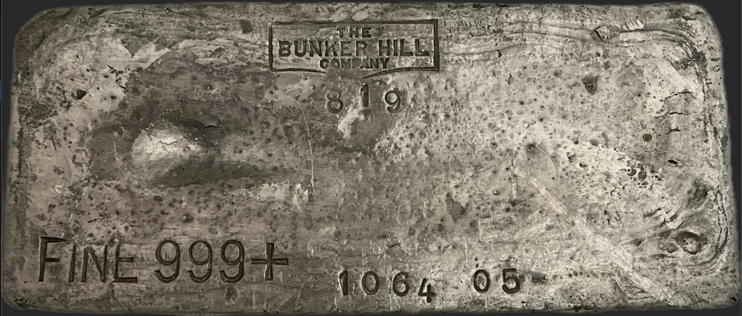 [Assignment Number] [THE BUNKER HILL COMPANY Custom Hallmark] [Weight Class] [999 FINE]Cast FinishOdd weight class ingot produced by The Bunker Hill Company.14
