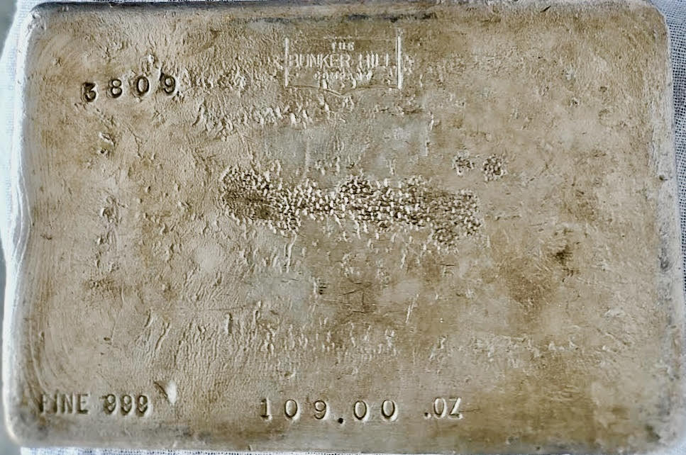 unnamed-6[Assignment Number] [THE BUNKER HILL COMPANY Custom Hallmark] [FINE 999] [Weight Class]Cast FinishApproximate 100oz class ingot produced by The Bunker Hill Company.3809<50