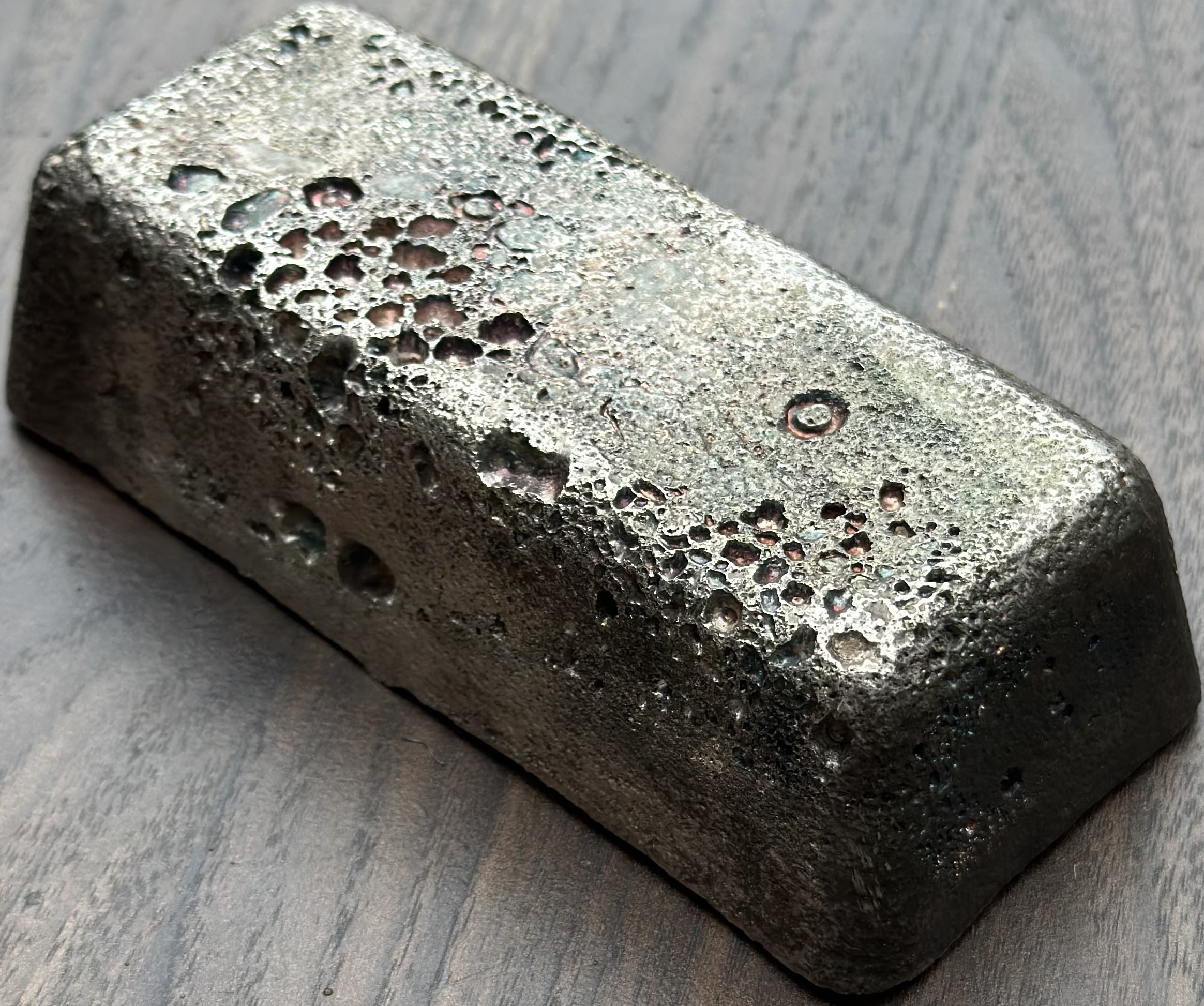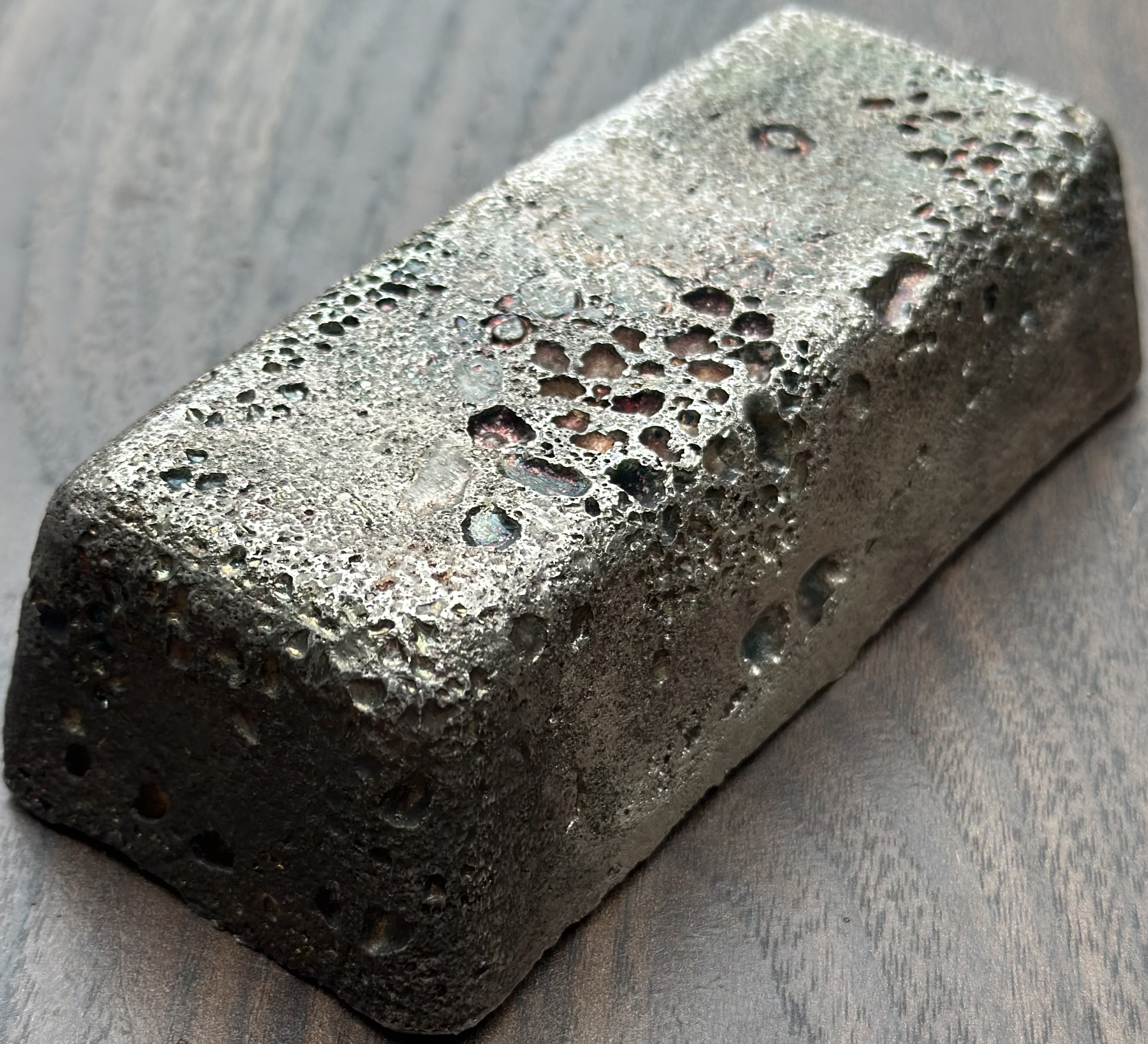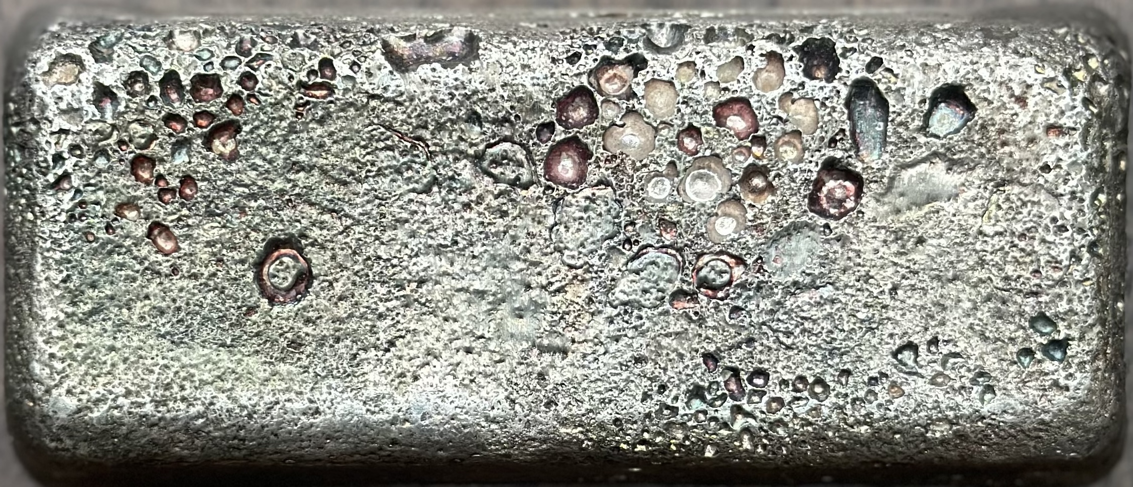 IMG_7610IMG_7611[DAVID C. DAVIS CO.] [ASSAY SCALE LOGO] [SAN FRANCISCO, CAL] [10 OZ’S] [999+]Cast FinishEarly series 10oz class ingot produced by David C. Davis Company of San Francisco, California in serial absent variation.  Believed to be of the same type of casting mould used on the 5oz class example, above, and occasionally observed with stampings on the reverse side.Serial Absent<50