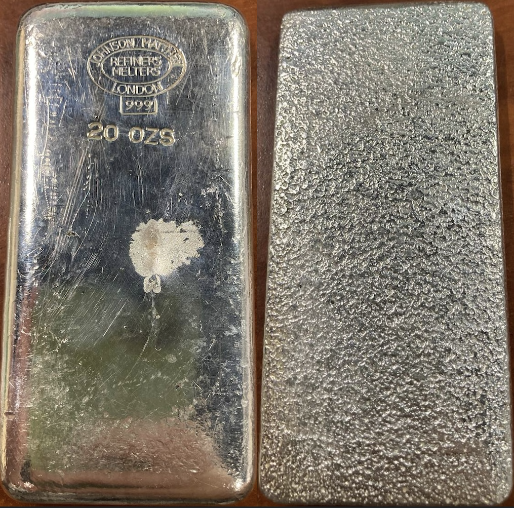 | 20oz | [20 OZ] [999+] | Cast Finish | 20oz example produced by Johnson Matthey, Canada. Similar to our example above, though lacks the Johnson Matthey ‘Large Diamond’ hallmark and smaller ‘Oval Logo’ designation. | Serial Absent | <5 |