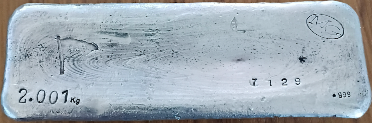 ![]() | 2•001kg | [Circular MG Hallmark] [ASS] [2•001KG] [999] | Cast Finish | 2.001 kg example produced by Johnson Matthey, Australia. While one might conclude the ‘ASS’ stamp is in reference to one’s posterior, it is in actuality representative of ‘ASSAY’. | Serail Absent | <250 |